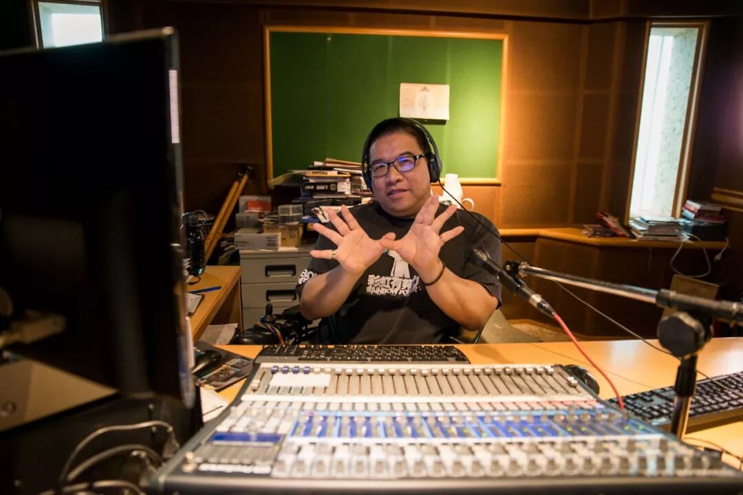 Vincent和我們約在了他工作的電臺。電臺裡鋪設了很多小木板,方便他出入帶門檻的各個房間。他坐在輪椅上,上半身顯得格外壯碩,這是多年撐拐杖的結果。